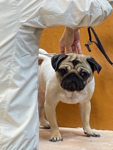 2020/08/05 8/5(水)Ken.Ken.pa grooming garden terrace(荒川区町屋) パグのこはるちゃんがカットコースで来てくれました?こはるちゃんにとっては、この夏が大変です!シャンプーは少し低温で気持ちいい~ 丸刈りでサッパリするよ~