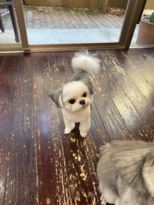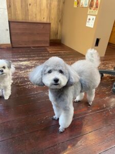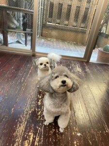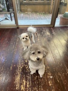トイプードルのつくしちゃんとミックス犬の豆大福ちゃんが