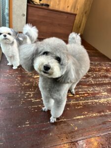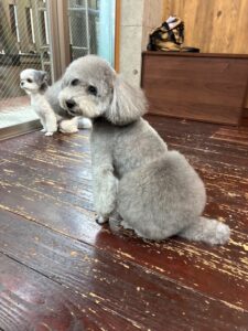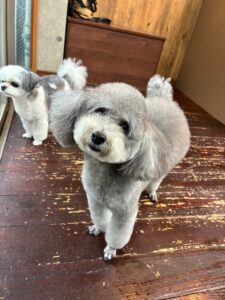 トイプードルのつくしちゃんとミックス犬の豆大福ちゃんが