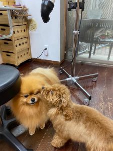 2021/10/16 10/16(土)Ken.Ken.pa grooming garden terrace(荒川区町屋) ポメラニアンのきなこ&あんちゃんがシャンプーコースで来てくれました?こすずちゃんも来たよ~ テラス?でクンクン?わーい?